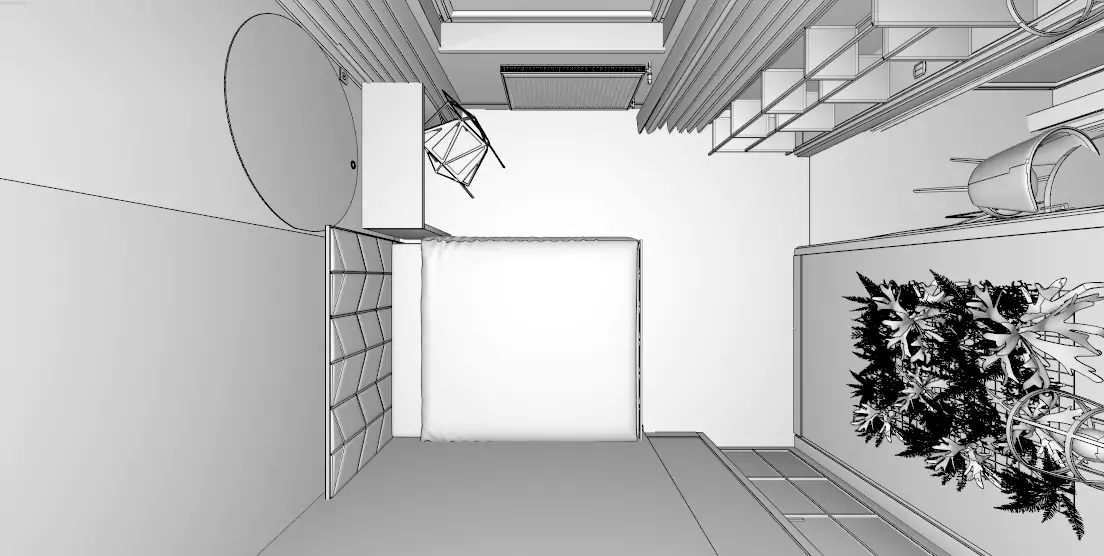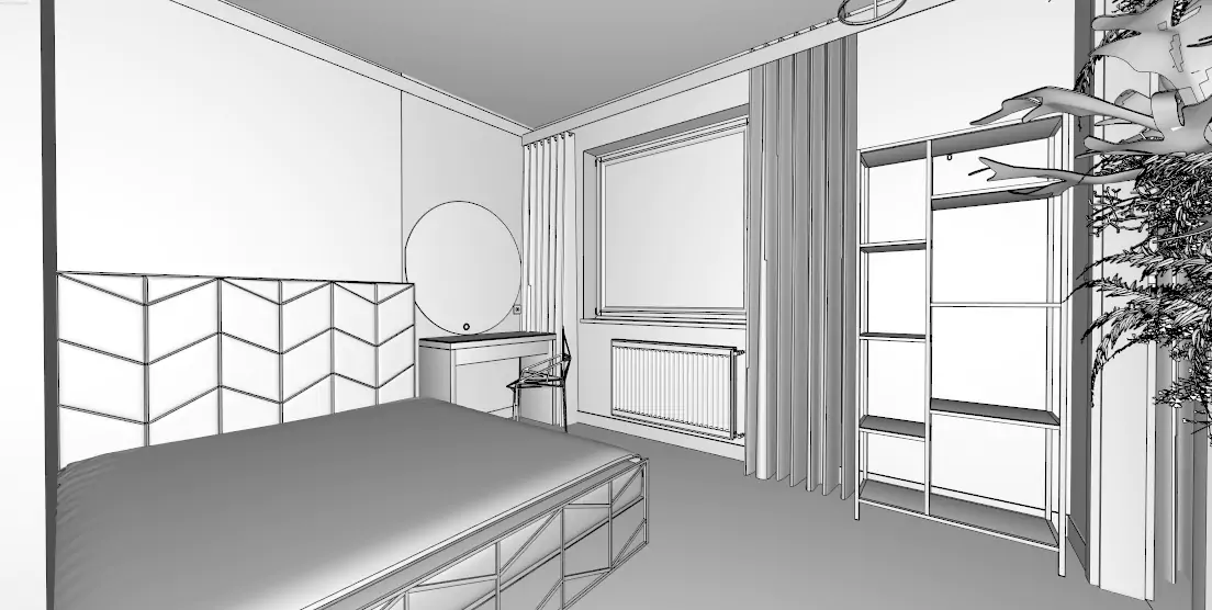 Bazując na wybranym przez Ciebie rzucie stworzymy wstępną wizualizację 3D tzw. Roboczą, zgodnie z Twoimi wskazówkami z ankiety. Ta wizualizacja jest w odcieniach szarości, ale pokaże kształt i rozmiar wszystkich elementów w pomieszczeniu. W tym momencie będziesz mógł/a wprowadzić zmiany według swoich preferencji. Pamiętaj, że wizualizacja wstępna ma za zadanie pokazać jak mniej więcej będzie wyglądać wnętrze, nie uwzględniając dodatków, kolorów, tekstur itd.